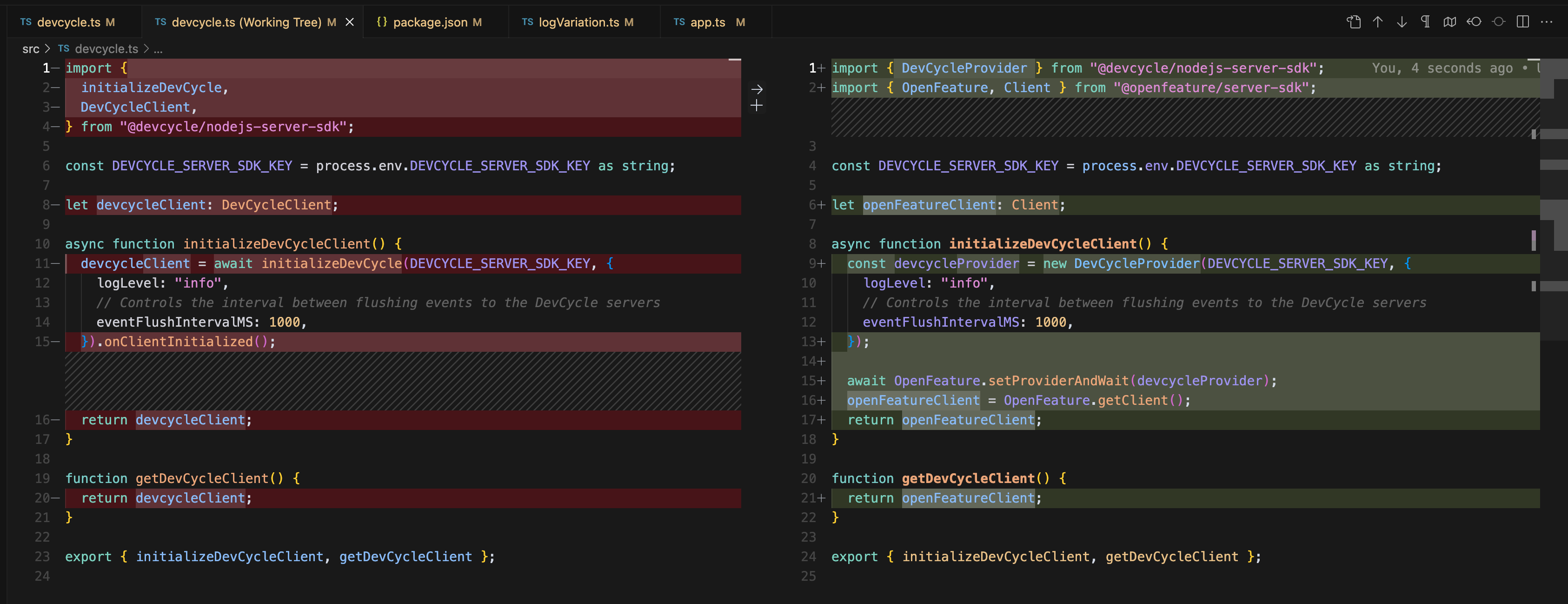 In the spirit of dogfooding OpenFeature and our own Providers, Kaushal from our team took up the task of updating the usage of DevCycle's Nest.js SDK in our main API service to use the OpenFeature Nest.js SDK with DevCycle's Nest.js Provider.