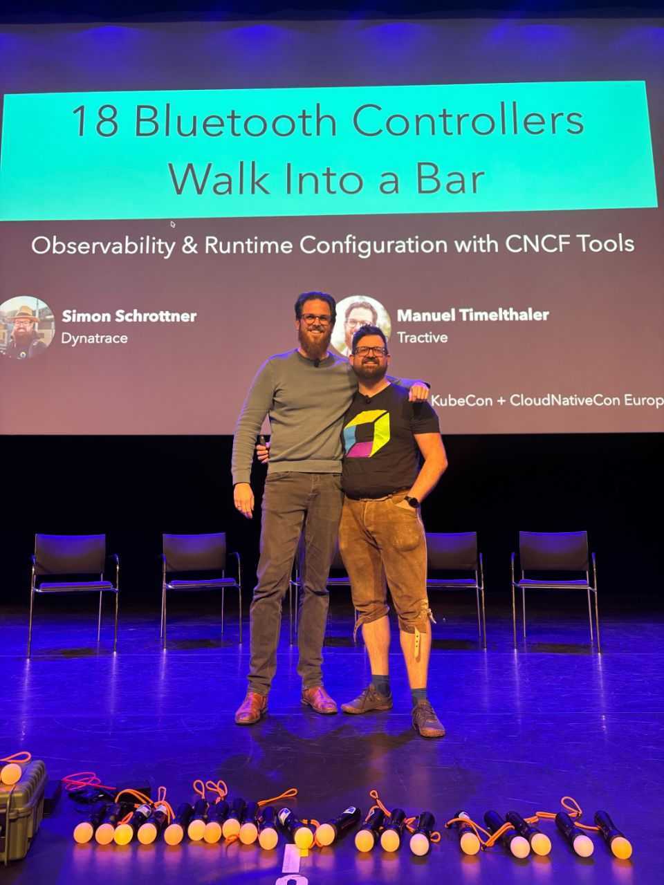 - 18 Bluetooth Controllers Walk into a Bar: Simon Schrottner and Manuel Timelthaler gave one of the more memorable talks of the week, demonstrating OpenFeature and OpenTelemetry in action with 18 PlayStation Move controllers, tackling observability in a physical distributed system.